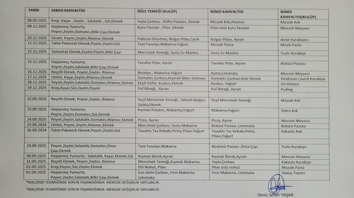 EYLÜL AYI BESLENME LİSTESİ